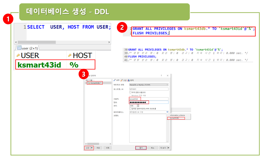 CREATE USER 'ksmart43id'@'%' IDENTIFIED BY 'ksmart43pw';