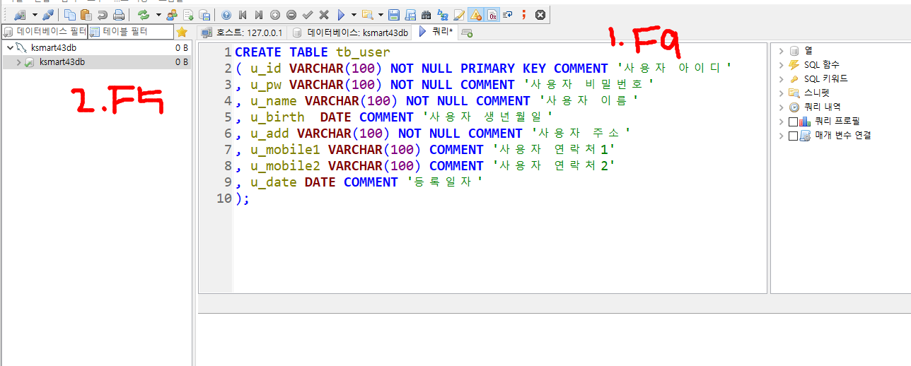 CREATE DATABASE ksmart43db DEFAULT CHARACTER SET UTF8;