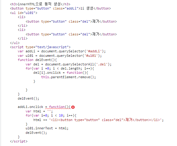 addLi이 class="addLi"로 설정되어 있어 id="addLi"로 변경 > 완료