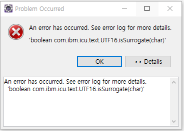 [UTF16] An error has occurred. See error log for more details. 'boolean com.ibm.icu.text.UTF16.isSurrogate(char)'