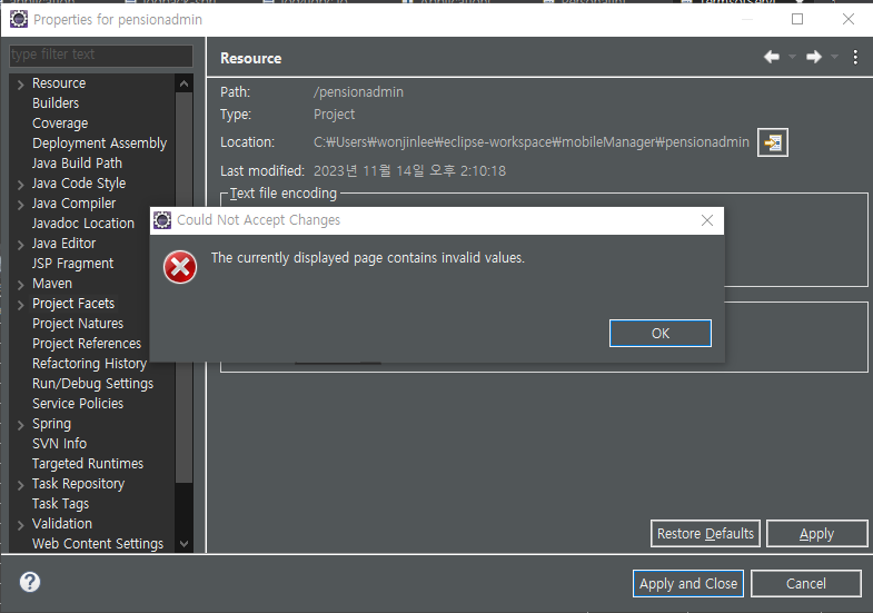 - 프로젝트 properties의 project facts 접근시 발생하는 오류