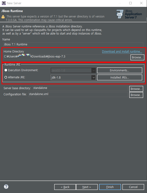 3. Home Directory에 다운받은 jboss 경로 설정