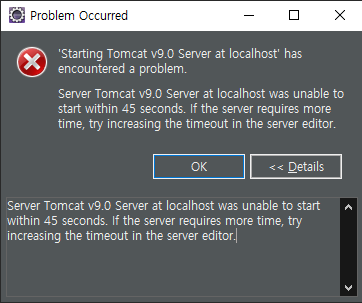 [Server] 'Starting Tomcat v9.0 Server at localhost' has encountered a problem.