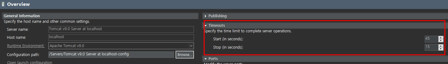 2. overview의 Timeouts 시간을 늘린다.